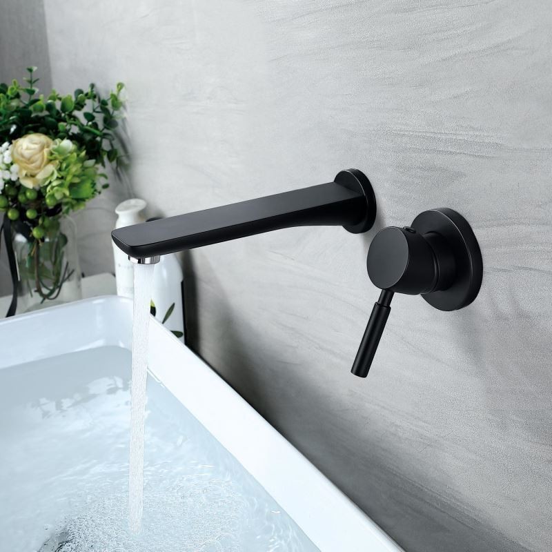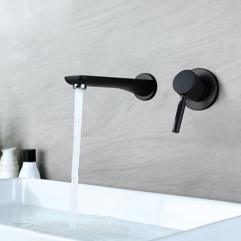 Black Brass Wall Mounted Bathroom Single Handle Basin Tap