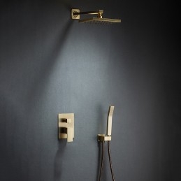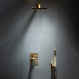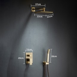 Style: Vintage Style, Antique, Features: Rainfall Shower, Dual-Head, Handshower Included, Waterfall, Faucet Type: Rainfall Shower Head System, Shower Faucet, Installation Type: Ceiling Mounted, Number Of Handles: Single Handle, Cold and Hot Switch: Yes, Valve Type: Ceramic Valve, Finish: Electroplated, Installation Holes and Handles: Single Handle Two Holes,