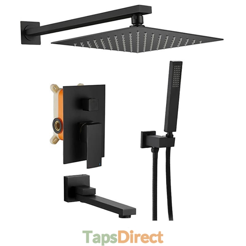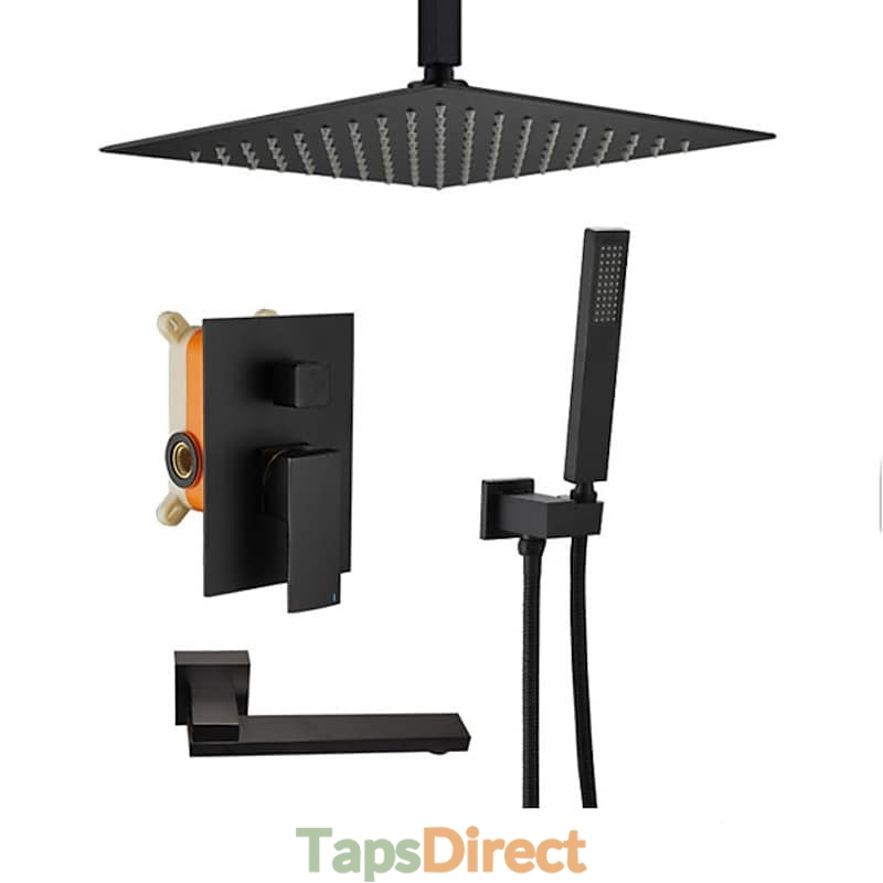 10 Inch Matte Black Shower Tap Complete Rainfall Shower Head Shower Tap