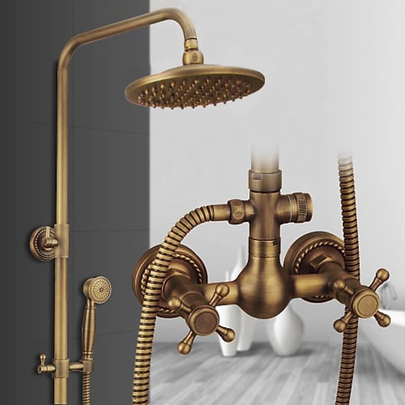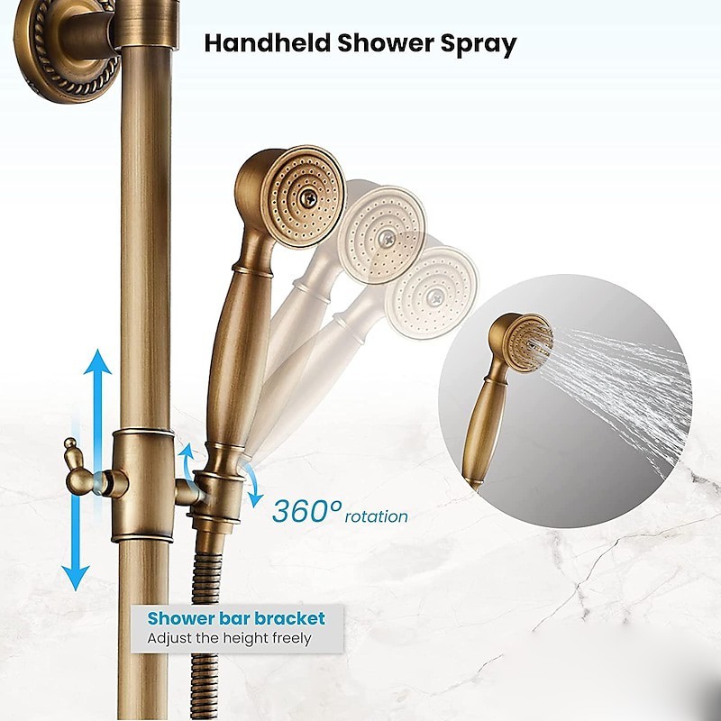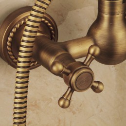 Style: Vintage Style, Country, Features: pullout, Handshower Included, Waterfall, Faucet Type: Shower System, Installation Type: Mount Outside, Cold and Hot Switch: Yes, Valve Type: Ceramic Valve, Finish: Antique Brass, Special selected products: COD,