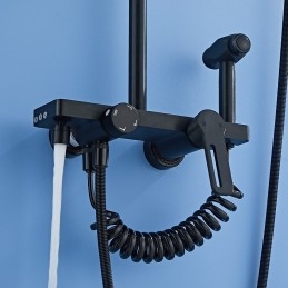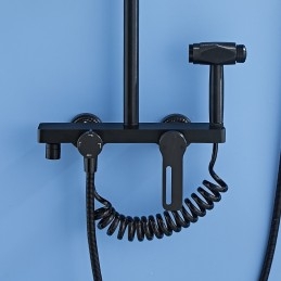 Style: Contemporary, Features: Multi Spray Shower, Rainfall Shower, pullout, Handshower Included, Waterfall, Faucet Type: Shower System, Premium High Pressure Dual Shower, Body Jet Massage, Rainfall Shower Head System, Installation Type: Mount Inside, Number Of Handles: Single Handle, Cold and Hot Switch: Yes, Valve Type: Ceramic Valve, Finish: Chrome, Installation Holes and Handles: Single Handle Three Holes, Water Pressure (Mpa): 0.5-1,