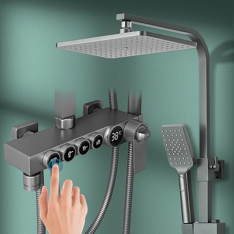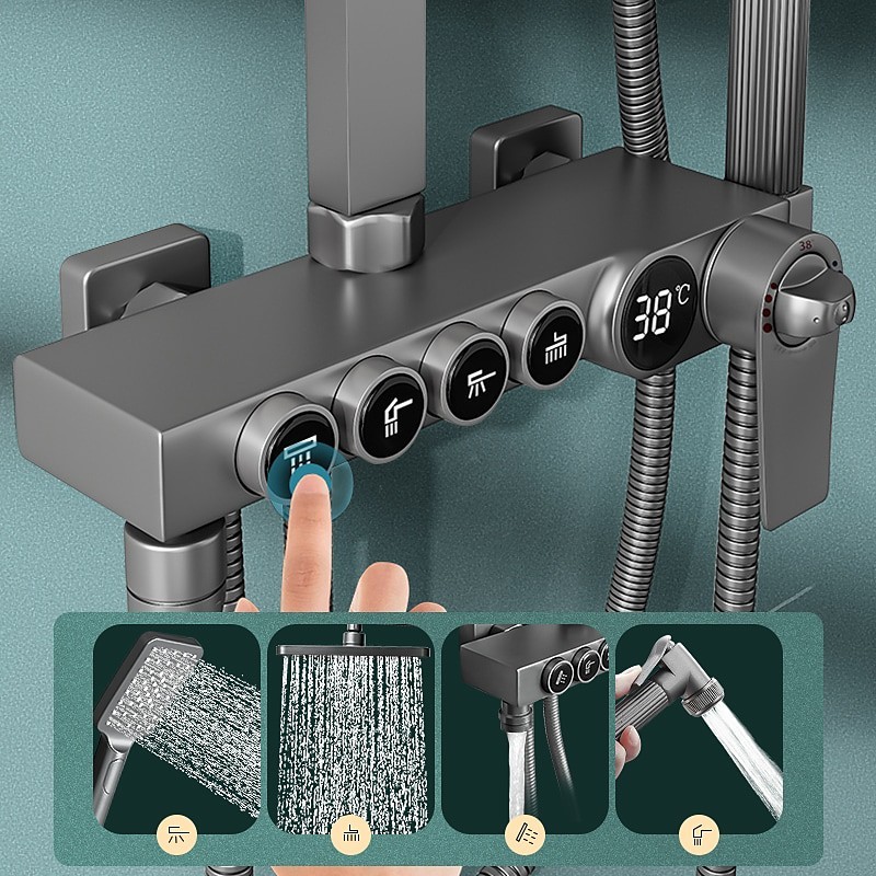 Style: Country, Contemporary, Features: Multi Spray Shower, Rainfall Shower, Dual-Head, Handshower Included, Waterfall, Faucet Type: Premium High Pressure Dual Shower, Body Jet Massage, Thermostatic Mixer valve, Rainfall Shower Head System, Shower System, Installation Type: Mount Inside, Cold and Hot Switch: Yes, Valve Type: Ceramic Valve, Finish: Painted Finishes, Water Pressure (Mpa): 0.5-1,