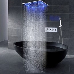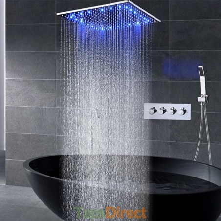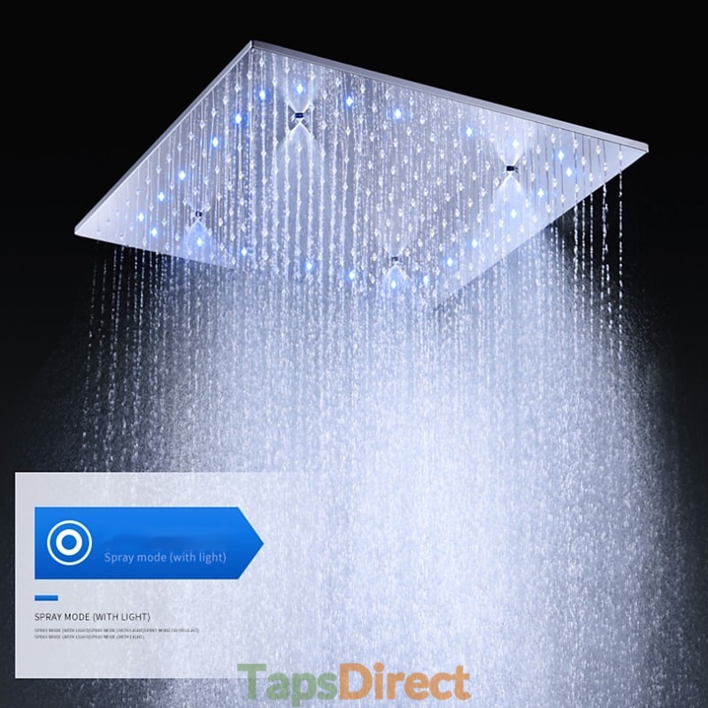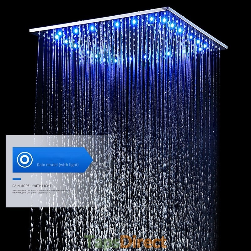 Style: Contemporary, Features: Multi Spray Shower, Rainfall Shower, Fixed Mount, LED, Handshower Included, Faucet Type: Shower Faucet, Rainfall Shower Head System, Installation Type: Ceiling Mounted, Valve Type: Ceramic Valve, Finish: Chrome,