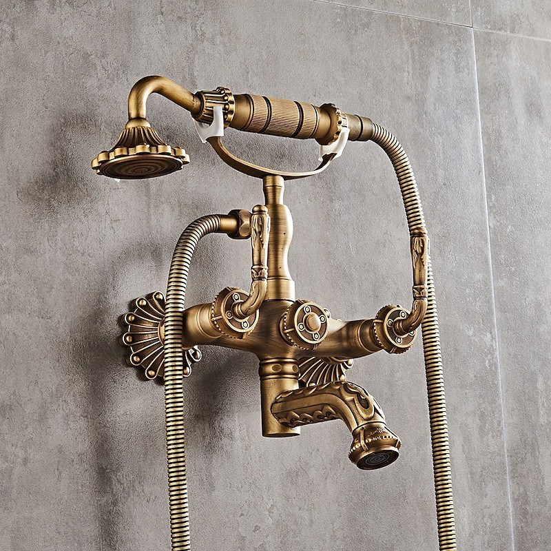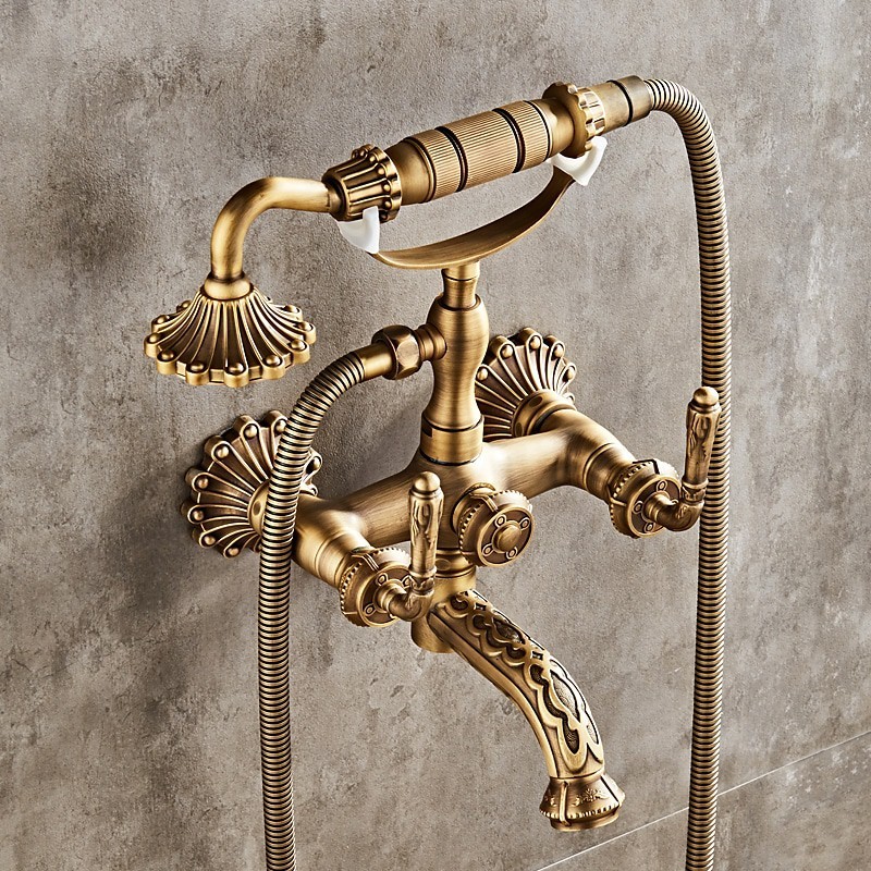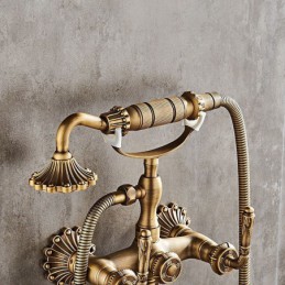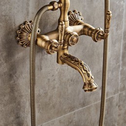Style: Vintage Style, Country, Features: pullout, Handshower Included, Faucet Type: Shower Faucet, Installation Type: Mount Outside, Cold and Hot Switch: Yes, Valve Type: Ceramic Valve, Finish: Antique Brass,