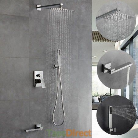 Rain Shower Included: Yes, Shower Arm Included: Yes, Handshower Included: Yes, Bodysprays Included: Yes, Valve Included: Yes, Drain Included: No,