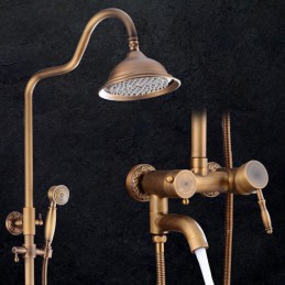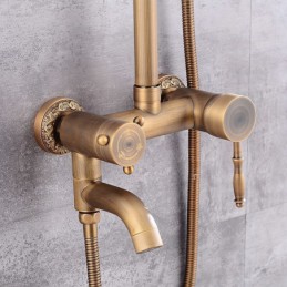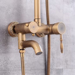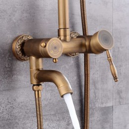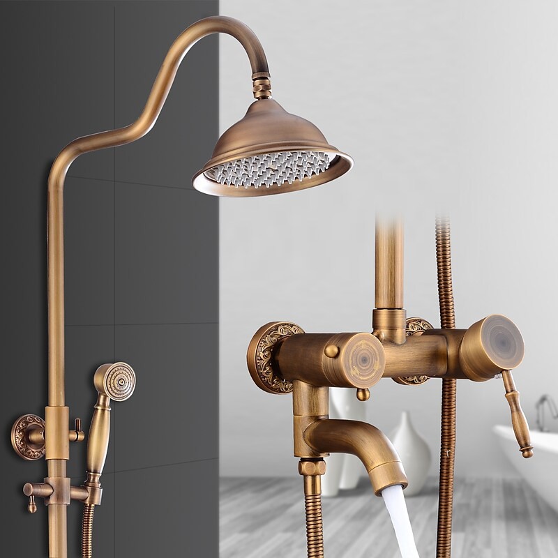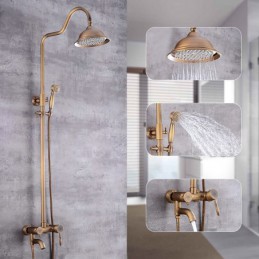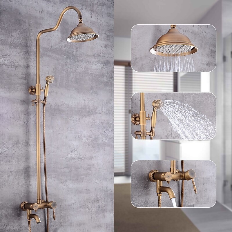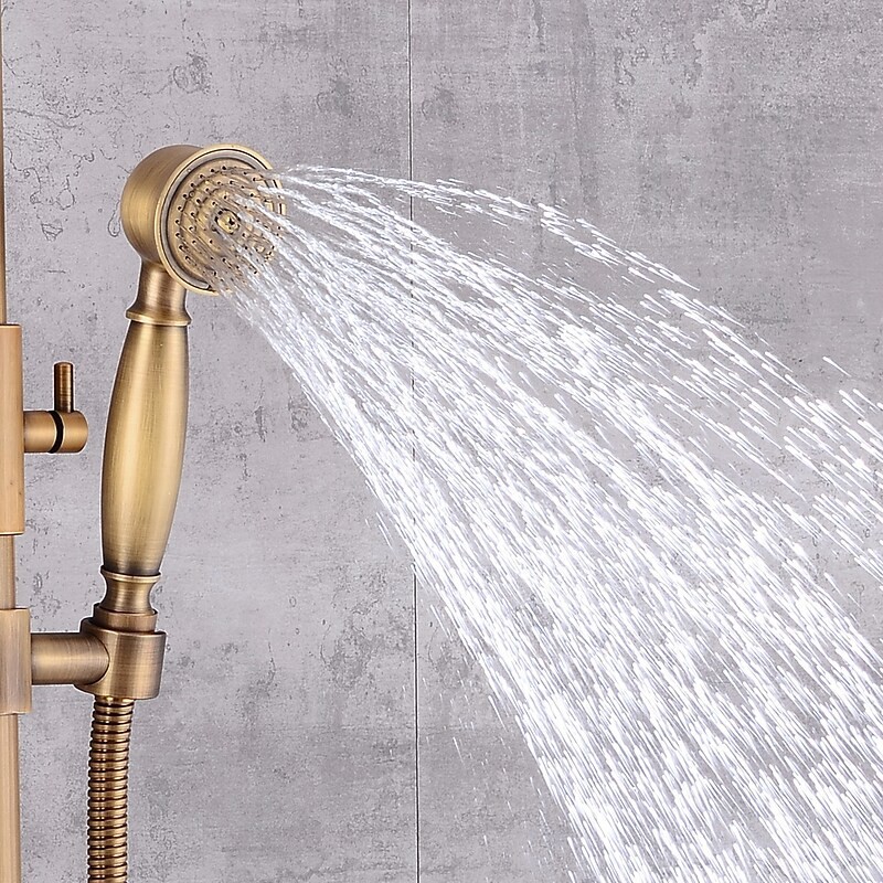 Style: Vintage Style, Country, Features: pullout, Handshower Included, Waterfall, Faucet Type: Shower System, Installation Type: Mount Inside, Cold and Hot Switch: Yes, Valve Type: Ceramic Valve, Finish: Antique Brass,