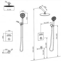 Style: Contemporary, Features: Handshower Included, Faucet Type: Thermostatic Mixer valve, Rainfall Shower Head System, Installation Type: Mount Inside, Valve Type: Brass Valve, Finish: Electroplated, Chrome, Painted Finishes,
