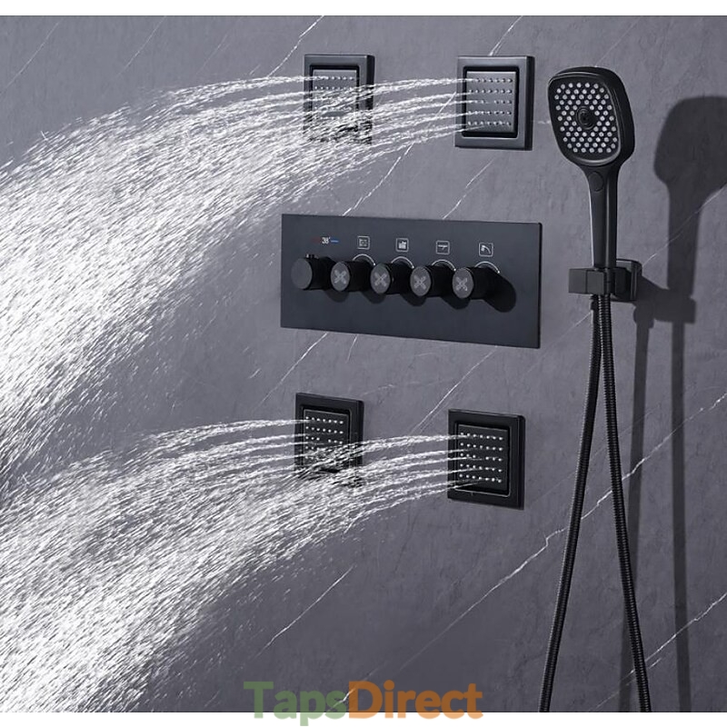 4 Function Thermostatic Mixer valve Body Jet Massage Rainfall Shower Waterfall Painted Finishes Mount Shower Tap