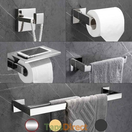 Type: Bathroom Accessory Set, Robe Hook, Towel Bar, Material: Stainless Steel, Low-carbon Steel, Metal, Finish: Brushed Steel, Painted Finishes, Gold, Brushed, Chrome, Mirror Polished, Brushed Nickel, Stainless Steel, Features: Multifunction, Creative, New Design, Style: Modern, Contemporary, Shape: Square, Installation Type: Wall Mounted, Quantity: 5pcs, Product Dimensions (cm): 0.000*0.000*0.000, Net Weight (kg): 0, Suitable Rooms: Home Office, Entry & Mudroom, Bathroom, Kitchen, Kids Room, Dining Room, Bedroom, Living Room, Listing Date: 08/19/2020,