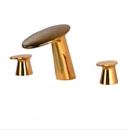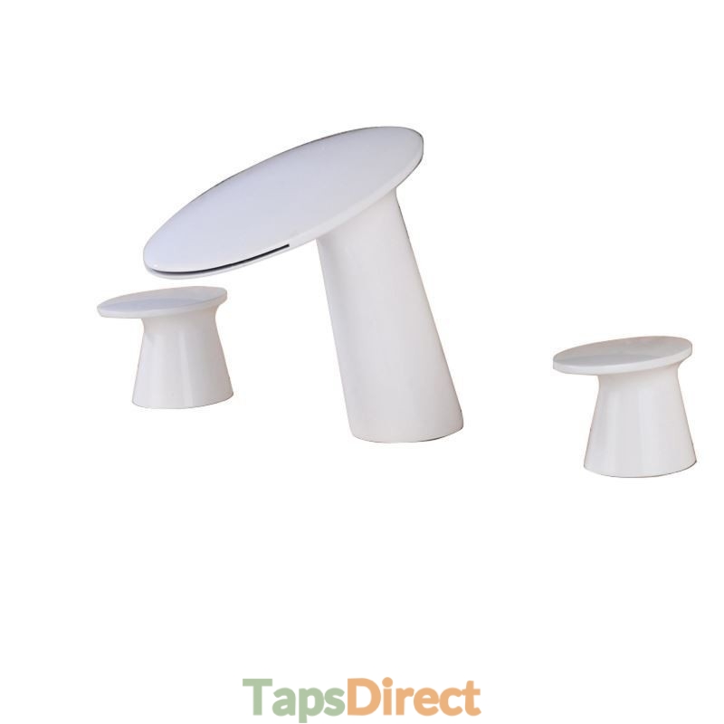 Three Hole Waterfall Widespread Copper Bathroom Sink Tap with Two Handles