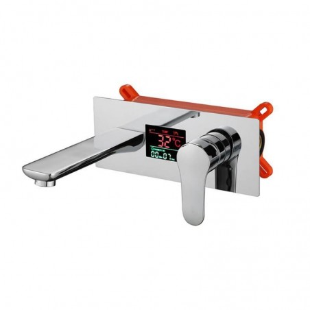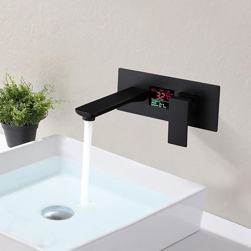 Wall Mounted Brass Basin Tap with Centerset Tap and LED Display Function Embedded Box, Available in Chrome Black Color