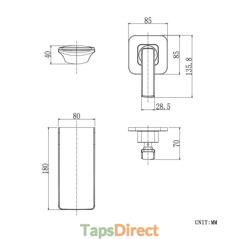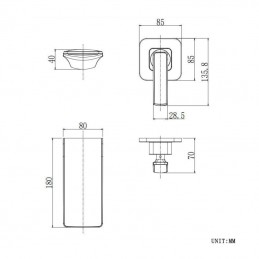 Brass Split Wall Mounted Tap with Single Handle, Waterfall Basin Tap