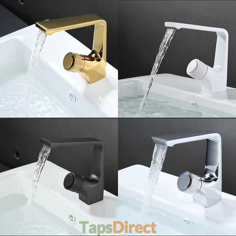Brass Waterfall Basin Mixer Tap for Single Handle Hot and Cold Hose and Chrome/Black/White/Ti PVD Bath Tap