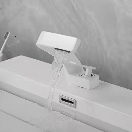 Type: Bathroom Sink Faucet+ Accessories, Style: Contemporary, Features: Waterfall, Faucet Type: Bathroom Sink Faucet, Installation Type: Centerset, Number Of Handles: Single Handle, Cold and Hot Switch: Yes, Valve Type: Ceramic Valve, Finish: Painted Finishes, Installation Holes and Handles: Single Handle One Hole,