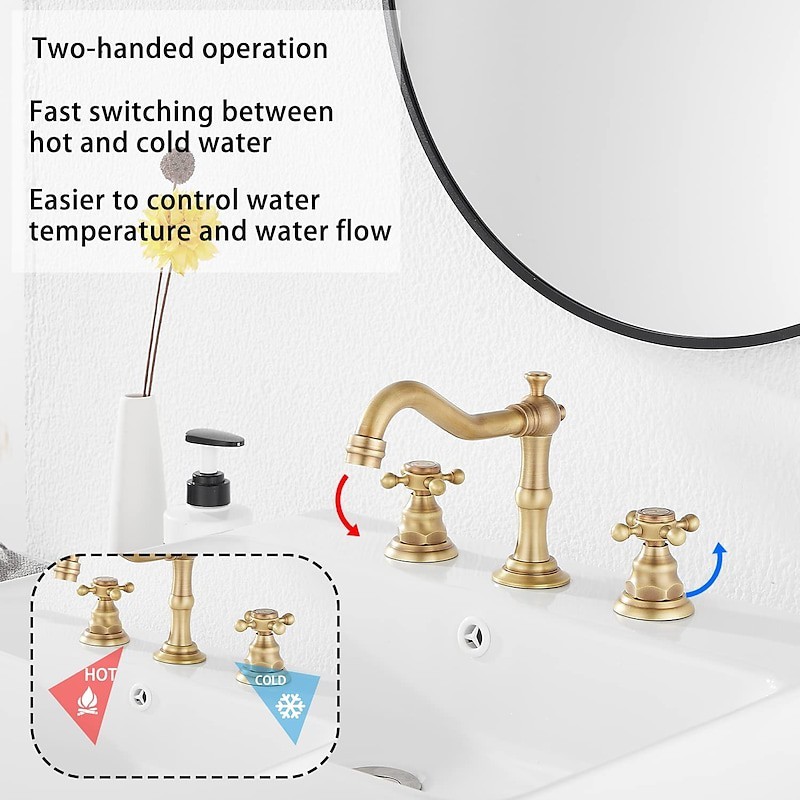 Features: Widespread, Faucet Type: Bathroom Sink Faucet, Installation Type: Widespread, Number Of Handles: Two Handles, Flow Rate (L/min): 2, Cold and Hot Switch: Yes, Valve Type: Ceramic Valve, Installation Holes and Handles: Two Handles Three Holes, Suitable Rooms: Bathroom, Special selected products: hot, COD,