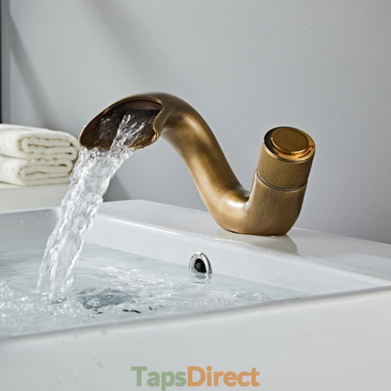 Type: Bathroom Sink Faucet+ Accessories, Features: Waterfall, Faucet Type: Bathroom Sink Faucet, Installation Type: Centerset, Number Of Handles: Single Handle, Cold and Hot Switch: Yes, Finish: Antique Brass, Nickel Brushed, Painted Finishes, Special selected products: COD, Installation Holes and Handles: Single Handle One Hole,