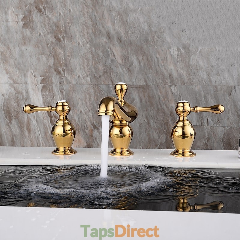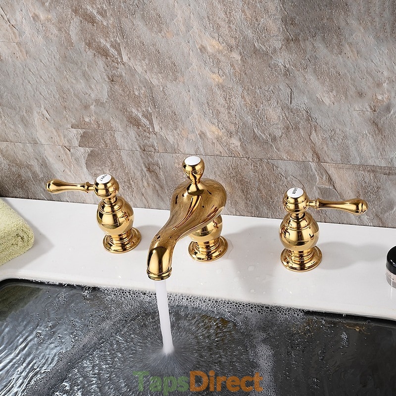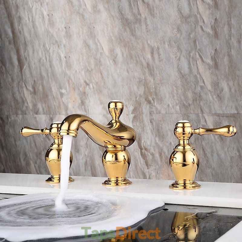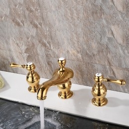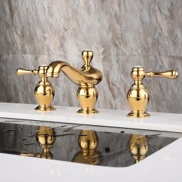 Type: Bathroom Sink Faucets, Style: Vintage, Features: Widespread, Faucet Type: Bathroom Sink Faucet, Installation Type: Widespread, Number Of Handles: Two Handles, Valve Type: Ceramic Valve, Finish: Electroplated, Installation Holes and Handles: Two Handles Three Holes,