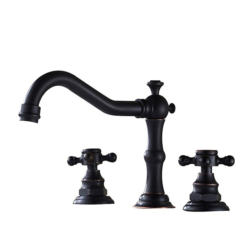 Type: Bathroom Sink Faucet+ Accessories, Style: Vintage, Features: Widespread, Faucet Type: Bathroom Sink Faucet, Installation Type: Widespread, Number Of Handles: Two Handles, Cold and Hot Switch: Yes, Valve Type: Brass Valve, Finish: Black, Antique Copper, Installation Holes and Handles: Two Handles Three Holes,