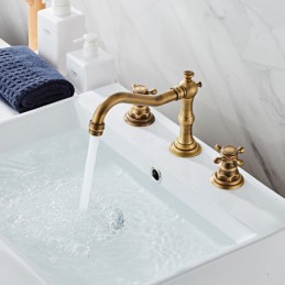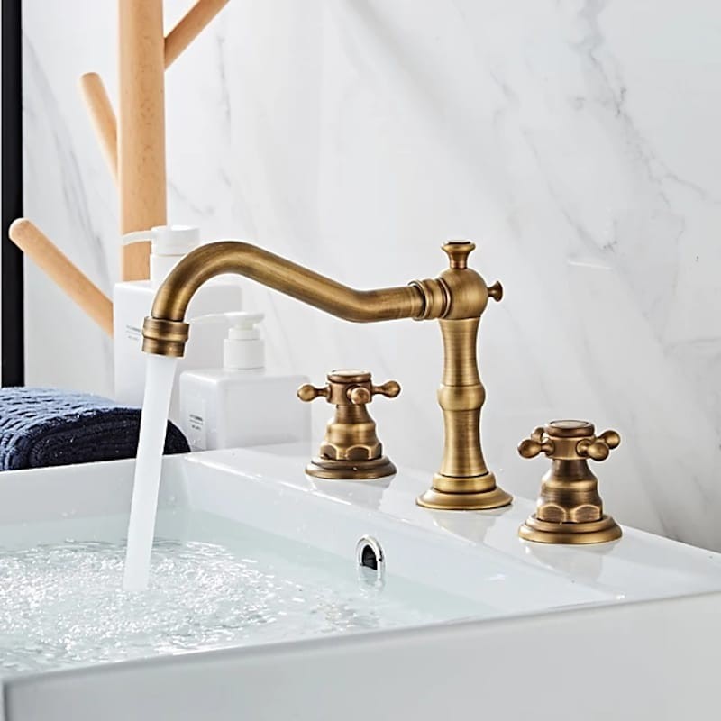 Style: Contemporary, Features: Widespread, Faucet Type: Bathroom Sink Faucet, Installation Type: Widespread, Number Of Handles: Two Handles, Cold and Hot Switch: Yes, Valve Type: Ceramic Valve, Installation Holes and Handles: Two Handles Three Holes, Suitable Rooms: Bathroom, Special selected products: COD,
