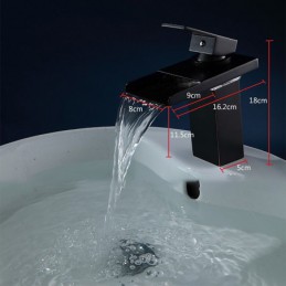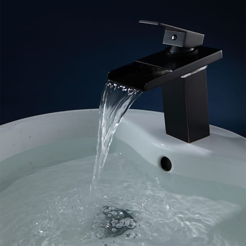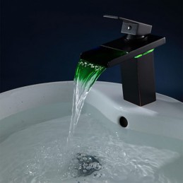 Style: Contemporary, Features: LED, Waterfall, Faucet Type: Bathroom Sink Faucet, Installation Type: Centerset, Number Of Handles: Single Handle, Cold and Hot Switch: Yes, Valve Type: Ceramic Valve, Finish: Oil-rubbed Bronze, Suitable Rooms: Bathroom, Installation Holes and Handles: Single Handle One Hole,