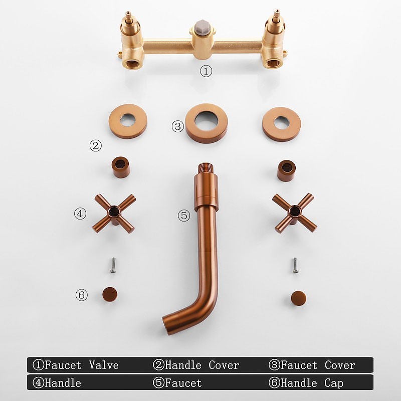 Type: Bathroom Sink Faucet+ Accessories, Style: Vintage, Features: Wall Mount, Widespread, Faucet Type: Bathroom Sink Faucet, Installation Type: Wall Mounted, Number Of Handles: Two Handles, Flow Rate (L/min): 30, Cold and Hot Switch: Yes, Valve Type: Ceramic Valve, Finish: Rose Gold, Cell type: no battery, Special selected products: COD, Installation Holes and Handles: Two Handles Three Holes, Water Pressure (Mpa): 1.5,