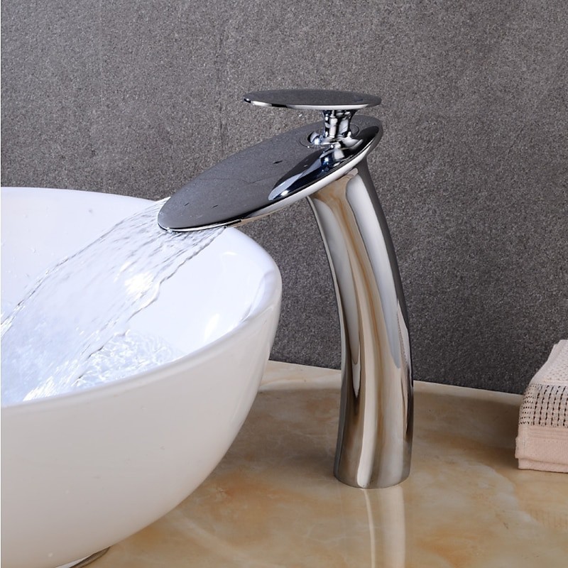 Style: Contemporary, Features: Waterfall, Faucet Type: Bathroom Sink Faucet, Installation Type: Centerset, Number Of Handles: Single Handle, Cold and Hot Switch: Yes, Valve Type: Ceramic Valve, Finish: Chrome, Special selected products: new, Installation Holes and Handles: Single Handle One Hole,