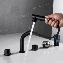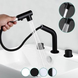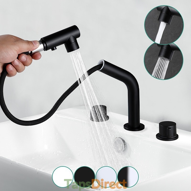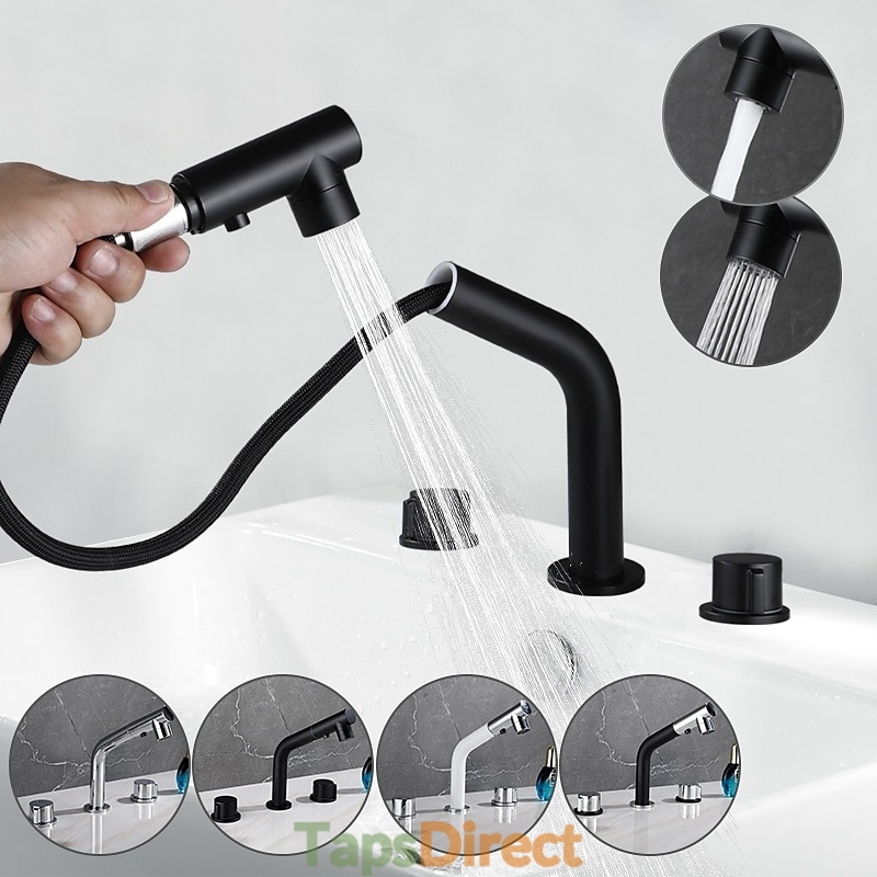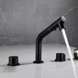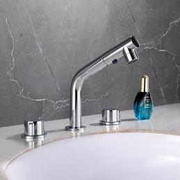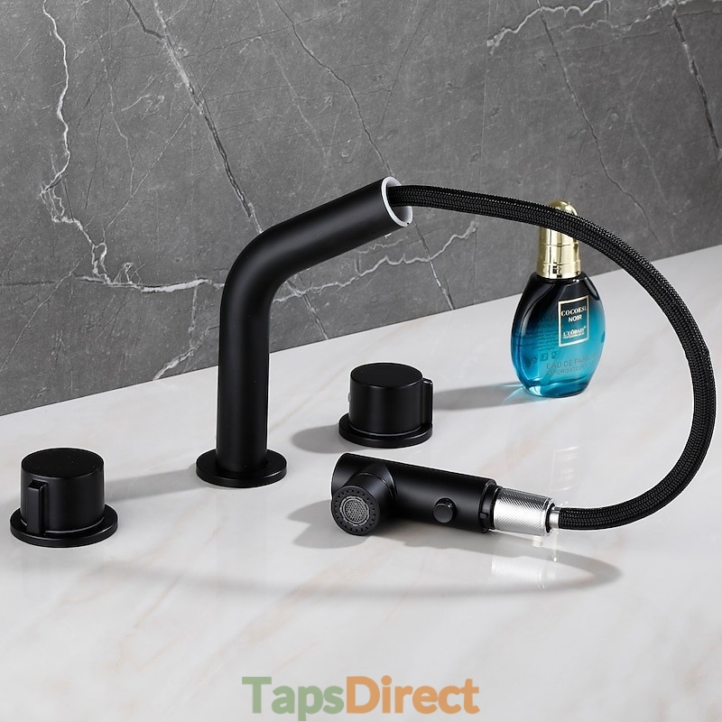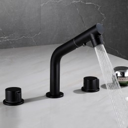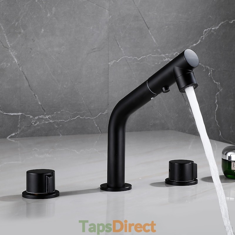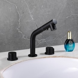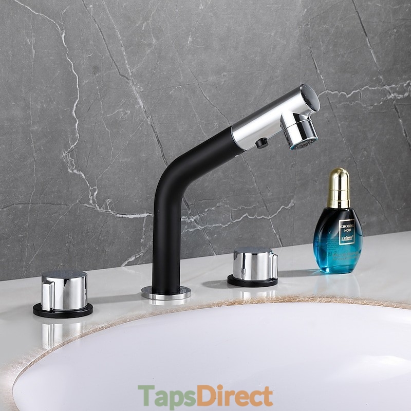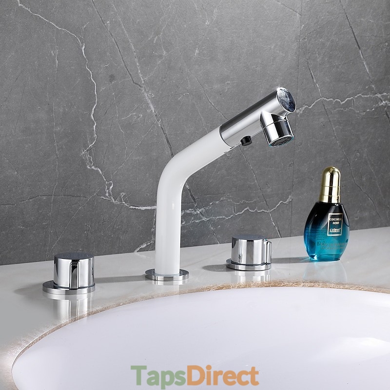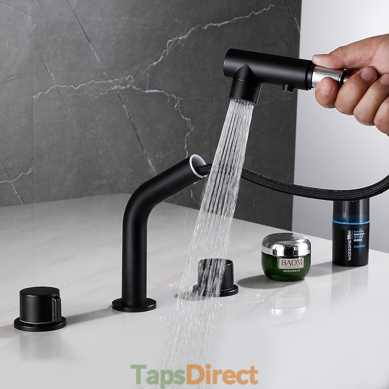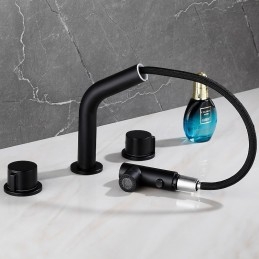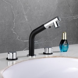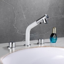 Type: Bathroom Sink Faucet+ Accessories, Style: Contemporary, Features: Rotatable, Pullout Spray, Pull out, Widespread, Faucet Type: Bathroom Sink Faucet, Installation Type: Widespread, Number Of Handles: Two Handles, Cold and Hot Switch: Yes, Valve Type: Ceramic Valve, Finish: Painted Finishes, Electroplated, Installation Holes and Handles: Two Handles Three Holes, Water Pressure (Mpa): 0.5-1,