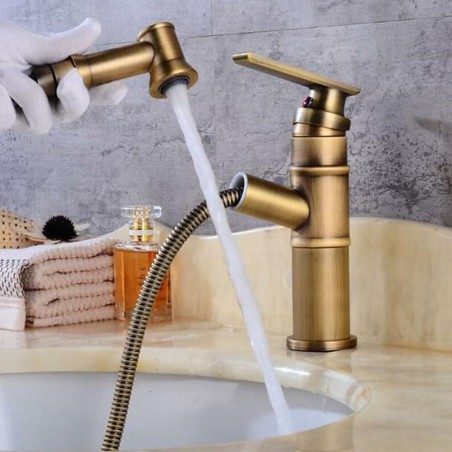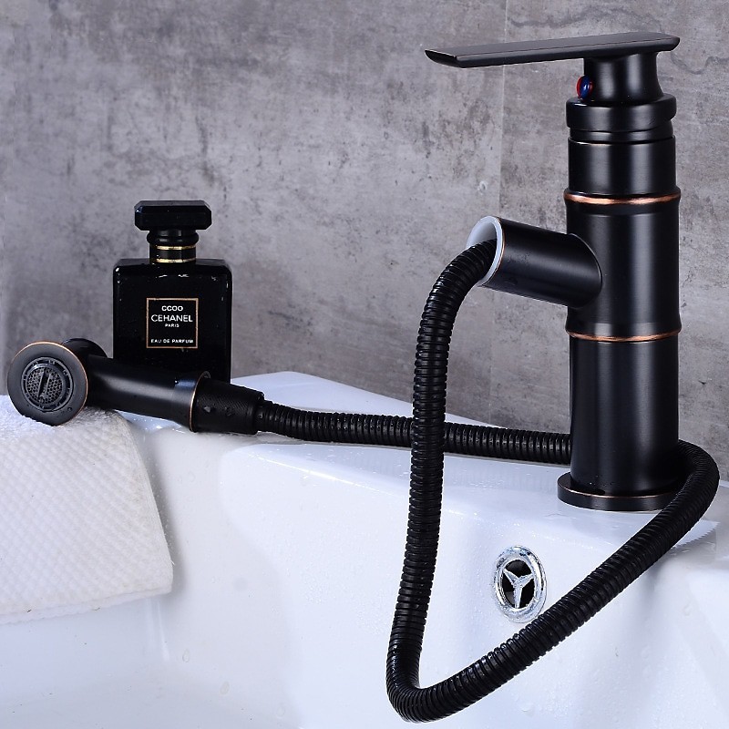 Features: Pull out, Faucet Type: Bathroom Sink Faucet, Installation Type: Centerset, Finish: Antique Brass, Oil-rubbed Bronze, Special selected products: COD, Installation Holes and Handles: Single Handle One Hole,