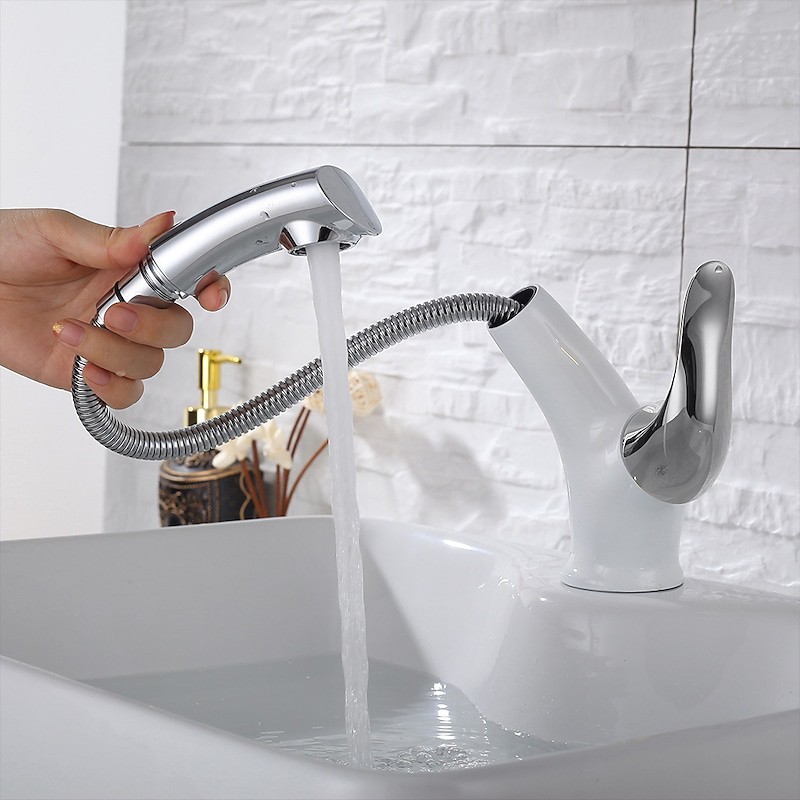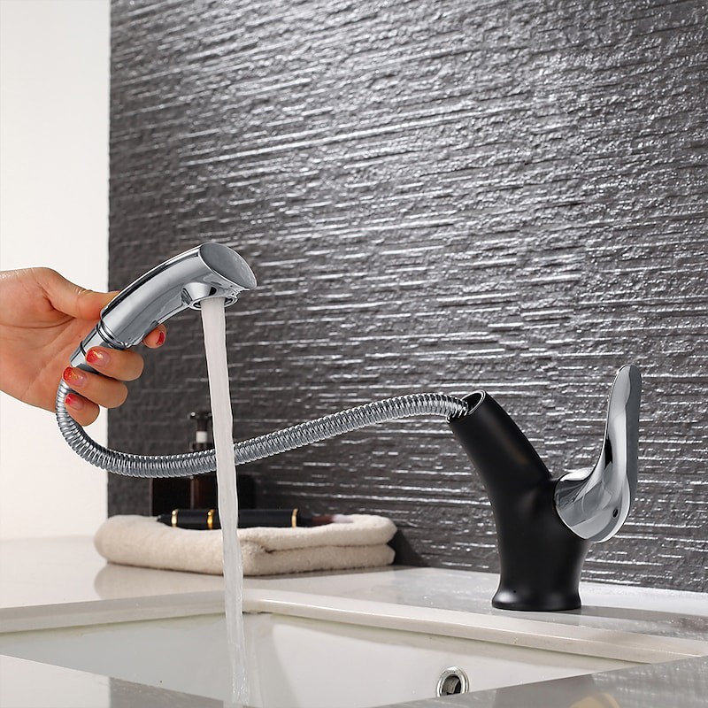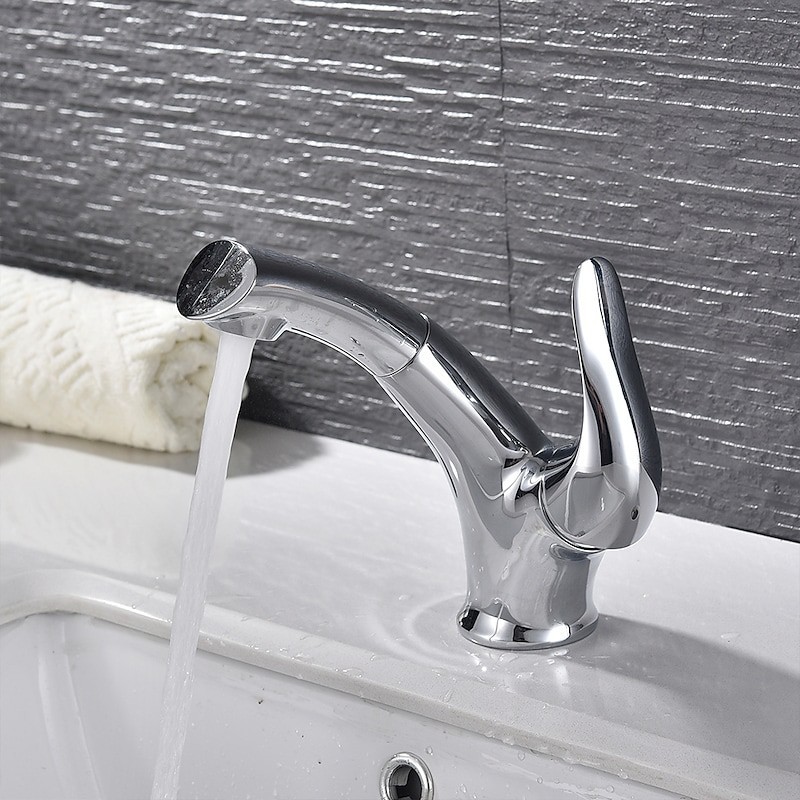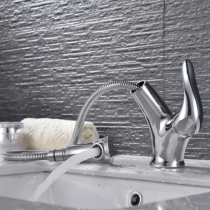 Type: Bathroom Sink Faucet+ Accessories, Style: Modern Contemporary, Features: Pull out, Faucet Type: Bathroom Sink Faucet, Installation Type: Centerset, Number Of Handles: Single Handle, Cold and Hot Switch: Yes, Valve Type: Ceramic Valve, Finish: Chrome, Installation Holes and Handles: Single Handle One Hole,