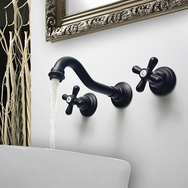 Style: Traditional / Vintage, Features: Widespread, Faucet Type: Bathroom Sink Faucet, Installation Type: Wall Mounted, Number Of Handles: Two Handles, Cold and Hot Switch: Yes, Valve Type: Ceramic Valve, Finish: Oil-rubbed Bronze, Special selected products: Clearance, Installation Holes and Handles: Two Handles Three Holes,