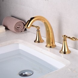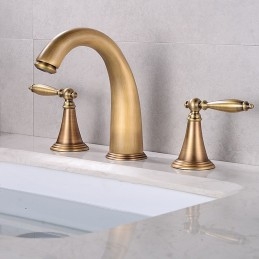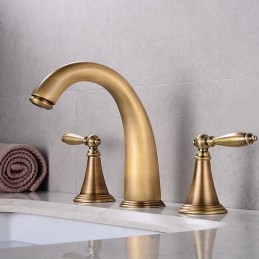 Type: Bathroom Sink Faucet+ Accessories, Style: Vintage, Features: Widespread, Faucet Type: Bathroom Sink Faucet, Installation Type: Widespread, Number Of Handles: Two Handles, Cold and Hot Switch: Yes, Valve Type: Brass Valve, Finish: Electroplated, Antique Brass, Special selected products: COD, Installation Holes and Handles: Two Handles Three Holes, Water Pressure (Mpa): 0.5-1,