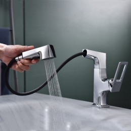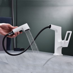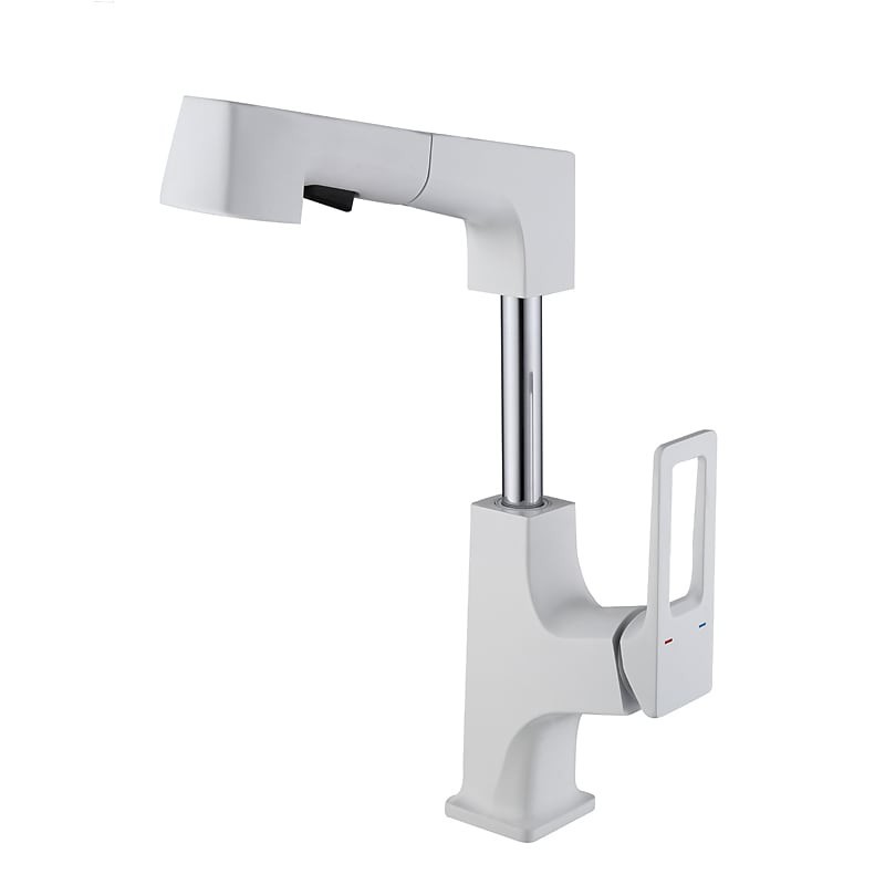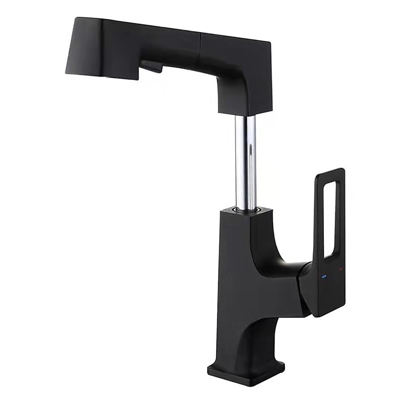 Type: Bathroom Sink Faucets, Style: Modern Contemporary, Features: Rotatable, Pullout Spray, Pull out, Faucet Type: Bathroom Sink Faucet, Installation Type: Centerset, Number Of Handles: Single Handle, Cold and Hot Switch: Yes, Valve Type: Ceramic Valve, Finish: Painted Finishes, Electroplated, Chrome, Installation Holes and Handles: Single Handle One Hole,