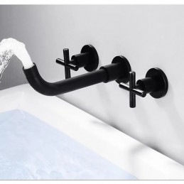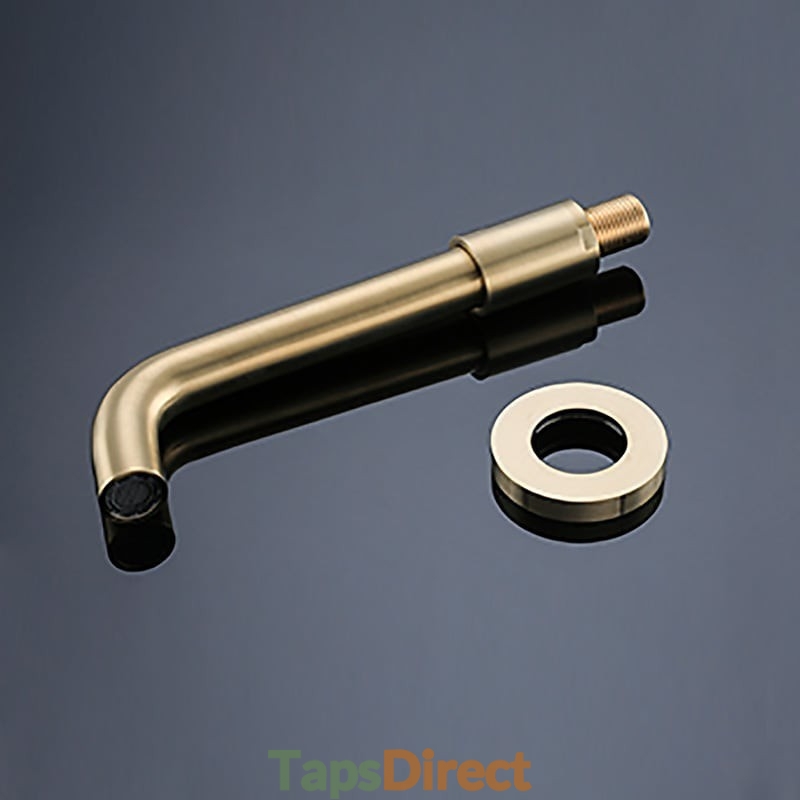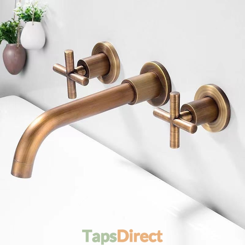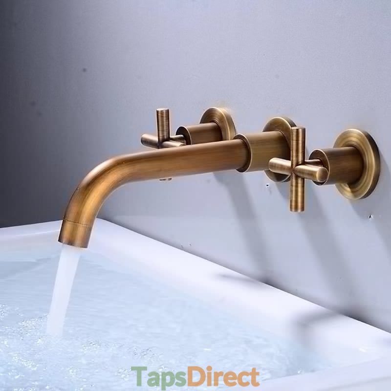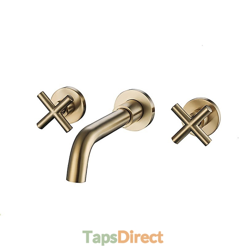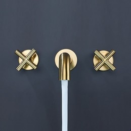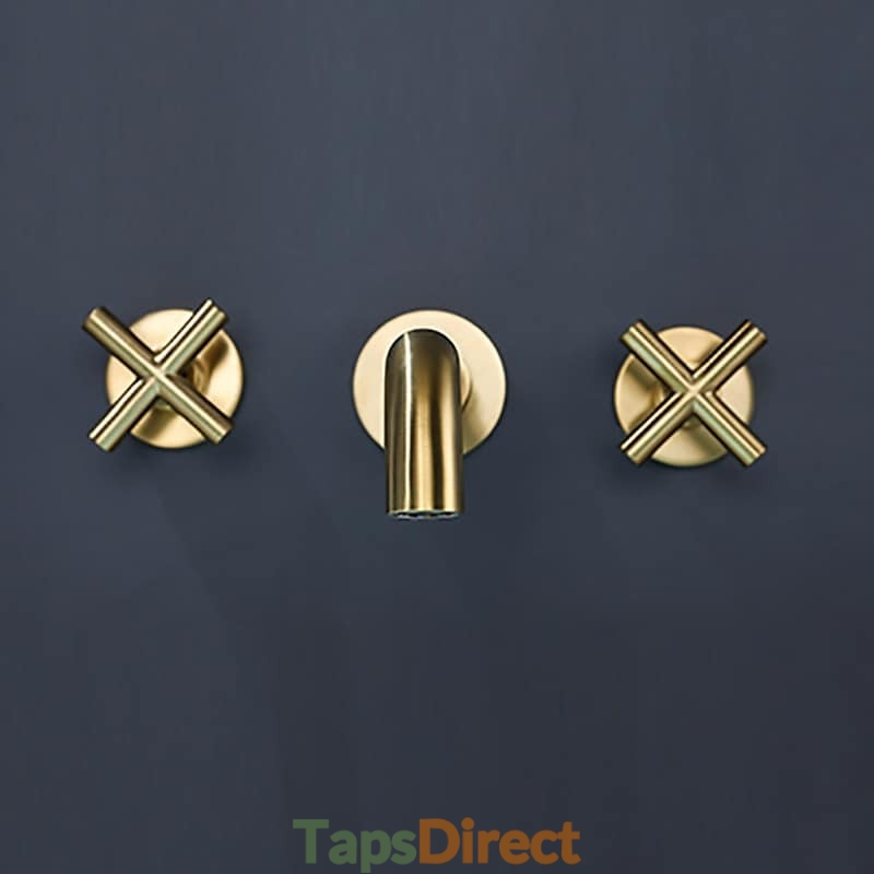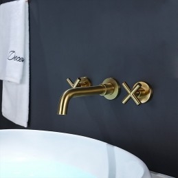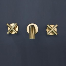 Style: Contemporary, Features: Wall Mount, Widespread, Faucet Type: Bathroom Sink Faucet, Installation Type: Wall Mounted, Number Of Handles: Two Handles, Cold and Hot Switch: Yes, Valve Type: Brass Valve, Finish: Brushed Gold, Installation Holes and Handles: Two Handles Three Holes,