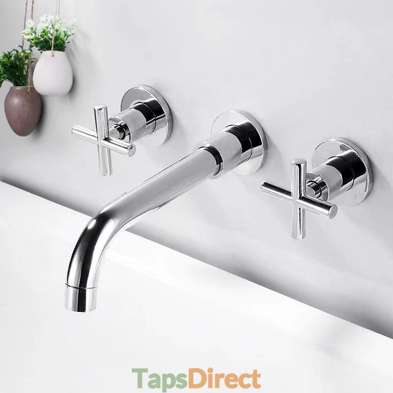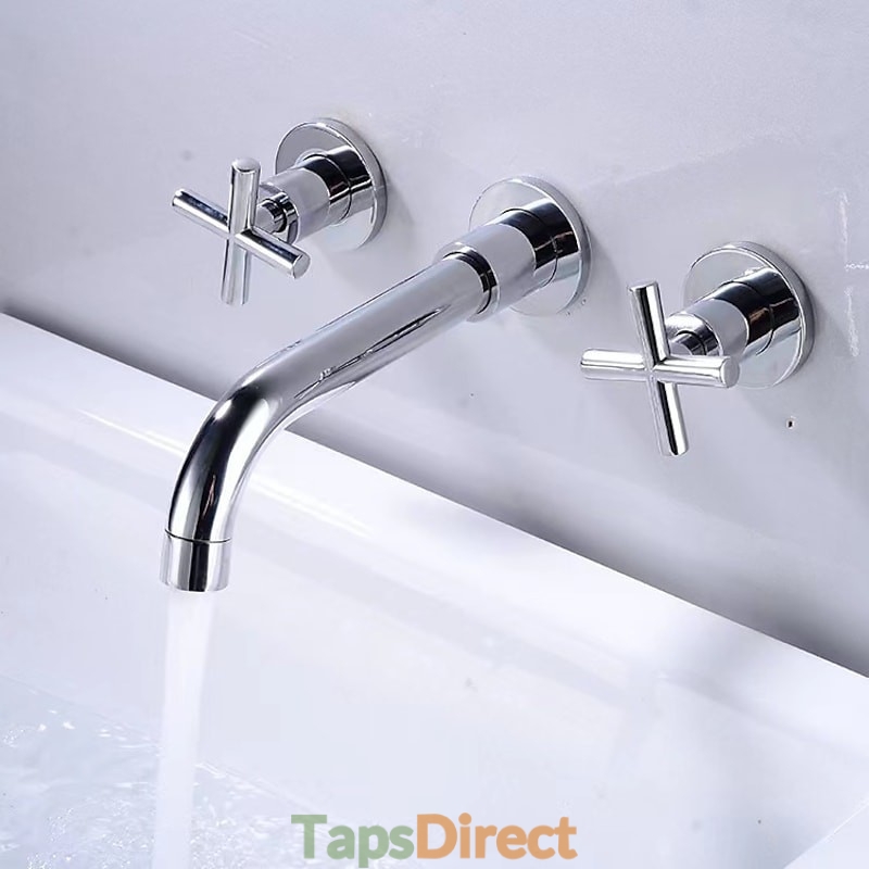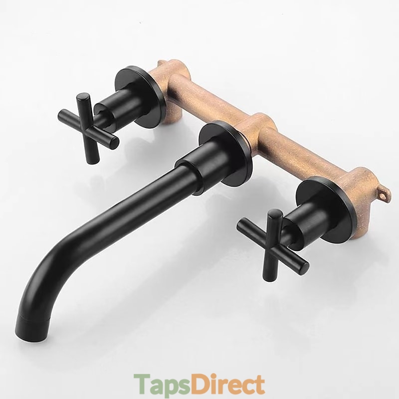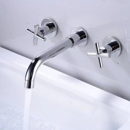 Wall Mount Tap Brass Basin Mixer and Rough Valve Included Double Handle for Sink Basin Washroom Mixer Tap Bathroom Sink Tap
