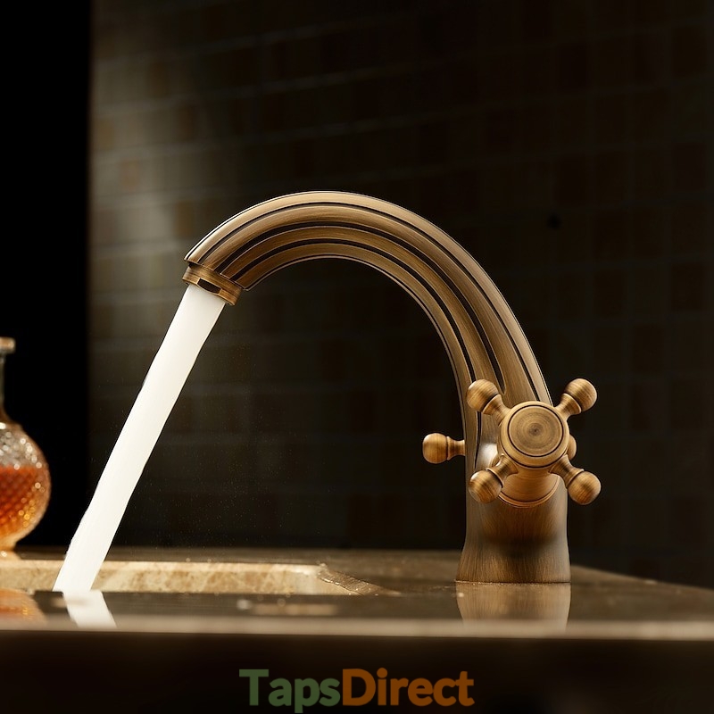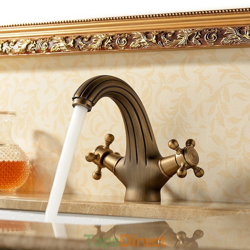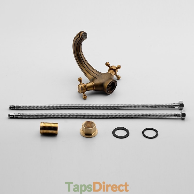 Style: Antique, Features: FaucetSet, Faucet Type: Bathroom Sink Faucet, Installation Type: Centerset, Number Of Handles: Two Handles, Flow Rate (L/min): #(1.5 GPM (5.7 L/min) ), Cold and Hot Switch: Yes, Valve Type: Ceramic Valve, Finish: Antique Brass, Installation Holes and Handles: One Hole, Two Handles One Hole, Suitable Rooms: Bathroom,