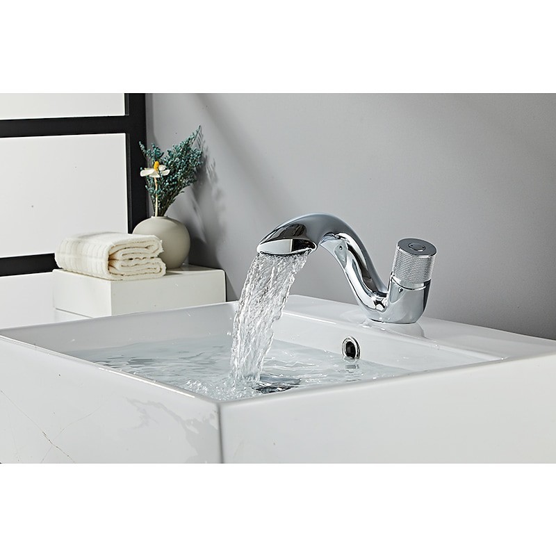 Style: Contemporary, Features: Waterfall, Faucet Type: Bathroom Sink Faucet, Installation Type: Centerset, Number Of Handles: Single Handle, Cold and Hot Switch: Yes, Finish: Electroplated, Nickel Brushed, Painted Finishes, Special selected products: COD, Installation Holes and Handles: Single Handle One Hole,