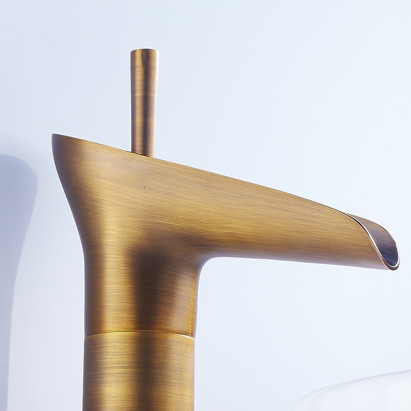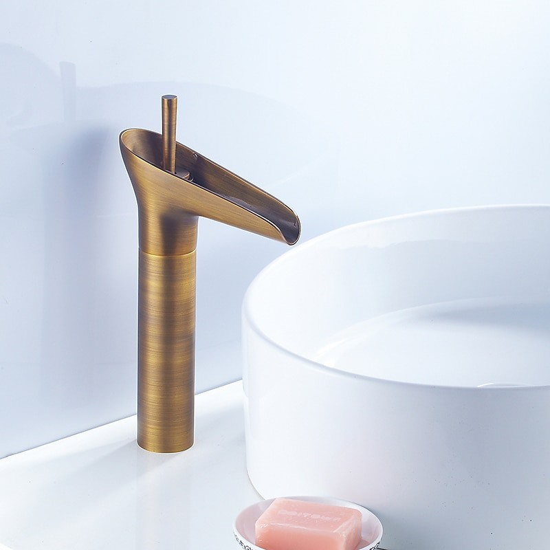 Features: Waterfall, Faucet Type: Bathroom Sink Faucet, Installation Type: Vessel, Number Of Handles: Single Handle, Flow Rate (L/min): #(N/A), Cold and Hot Switch: Yes, Valve Type: Ceramic Valve, Finish: Antique Brass, Installation Holes and Handles: Single Handle One Hole, Suitable Rooms: Bathroom, Special selected products: hot, COD,