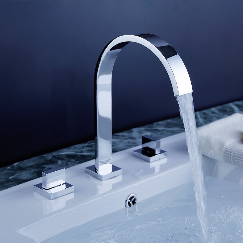 Style: Contemporary, Features: Widespread, Faucet Type: Bathroom Sink Faucet, Installation Type: Widespread, Number Of Handles: Two Handles, Flow Rate (L/min): #(1.8 GPM (6.81 L/min)), Cold and Hot Switch: Yes, Valve Type: Ceramic Valve, Finish: Chrome, Installation Holes and Handles: Two Handles Three Holes, Three Holes,