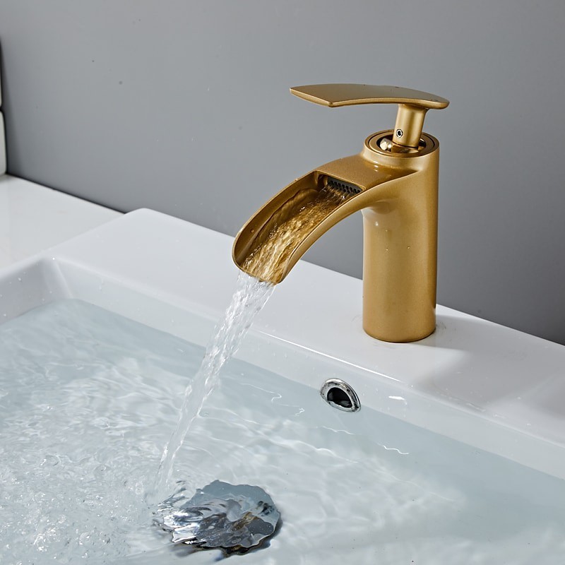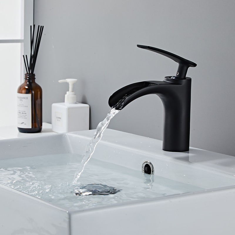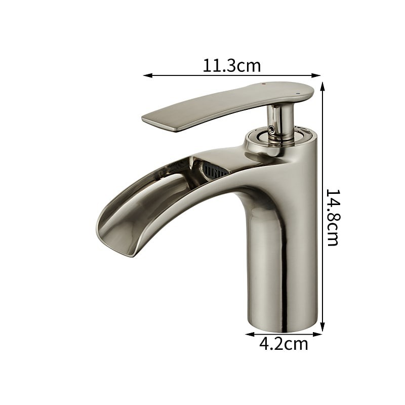 Style: Modern Contemporary, Features: Waterfall, Faucet Type: Bathroom Sink Faucet, Installation Type: Centerset, Number Of Handles: Single Handle, Valve Type: Ceramic Valve, Finish: Electroplated, Installation Holes and Handles: Single Handle One Hole,