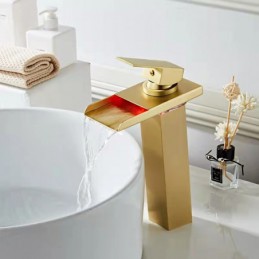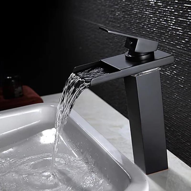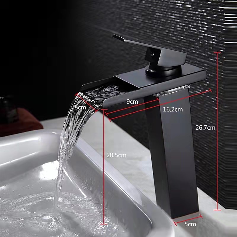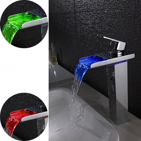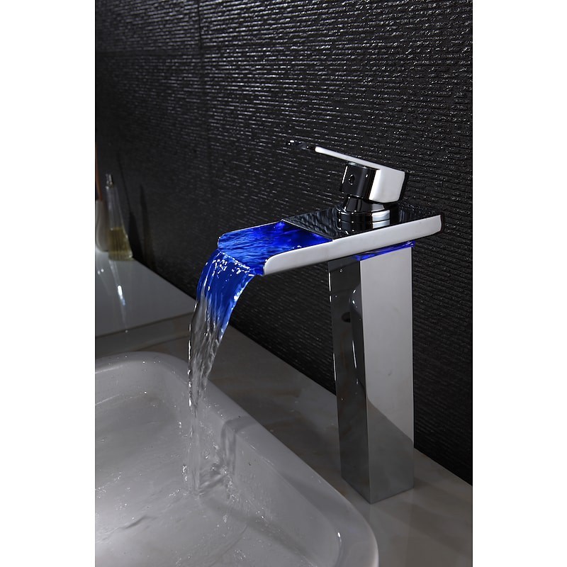 Style: Contemporary, Features: Waterfall, Faucet Type: Bathroom Sink Faucet, Installation Type: Centerset, Cold and Hot Switch: Yes, Valve Type: Ceramic Valve, Finish: Chrome, Installation Holes and Handles: Single Handle One Hole, Special selected products: Clearance,
