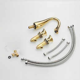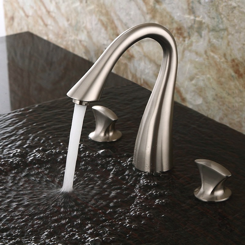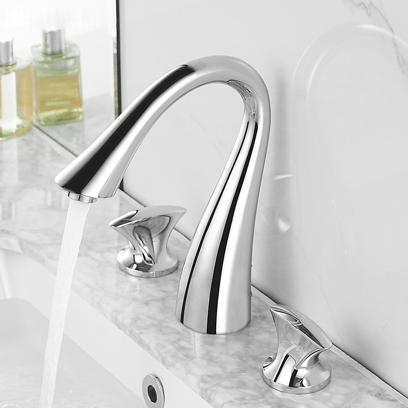 Type: Bathroom Sink Faucet+ Accessories, Style: Vintage, Contemporary, Features: FaucetSet, Widespread, Faucet Type: Bathroom Sink Faucet, Installation Type: Widespread, Number Of Handles: Two Handles, Cold and Hot Switch: Yes, Valve Type: Ceramic Valve, Finish: Electroplated, Installation Holes and Handles: Two Handles Three Holes, Water Pressure (Mpa): 0.5-1,