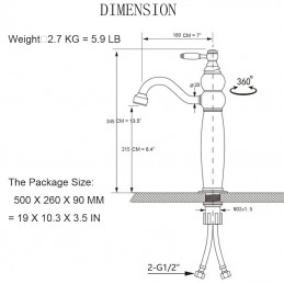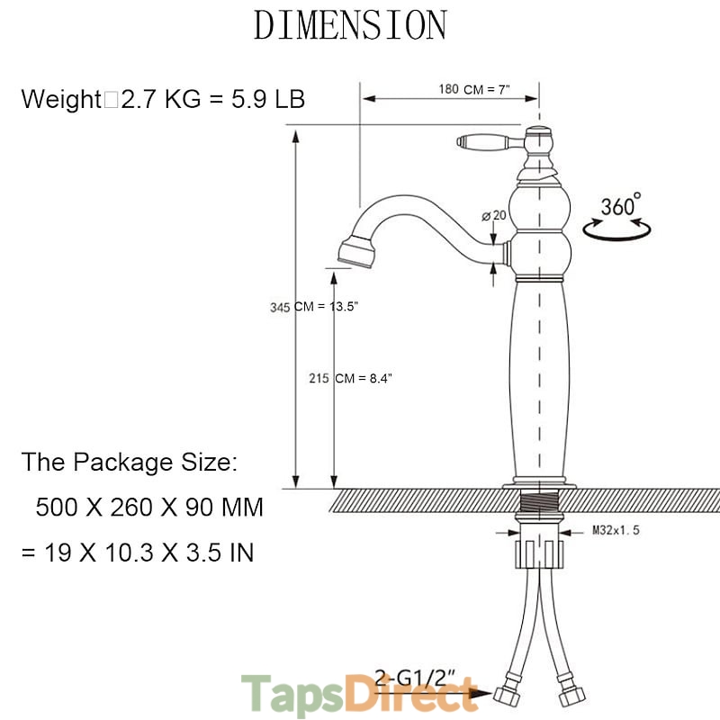 Spout Height (cm): 23.5, Spout Width (cm): 15, Overall Height (cm): 32, Installation Hole Diameter (cm): 3.5,
