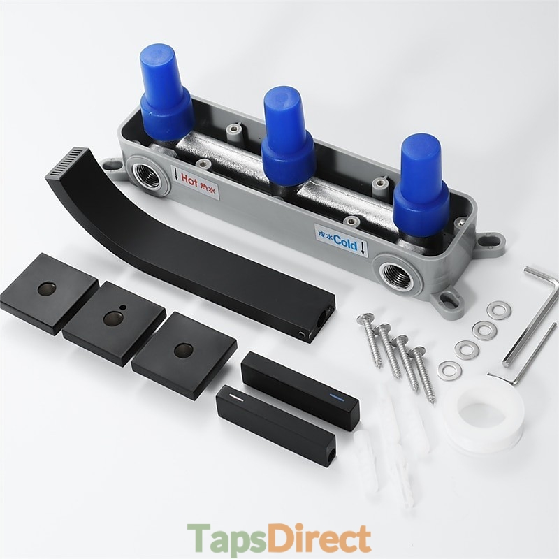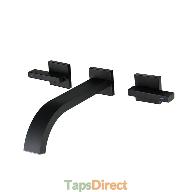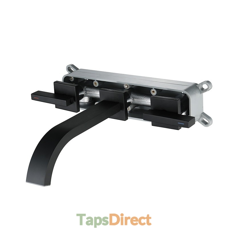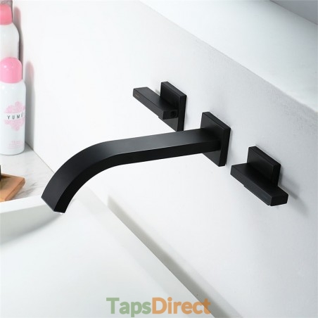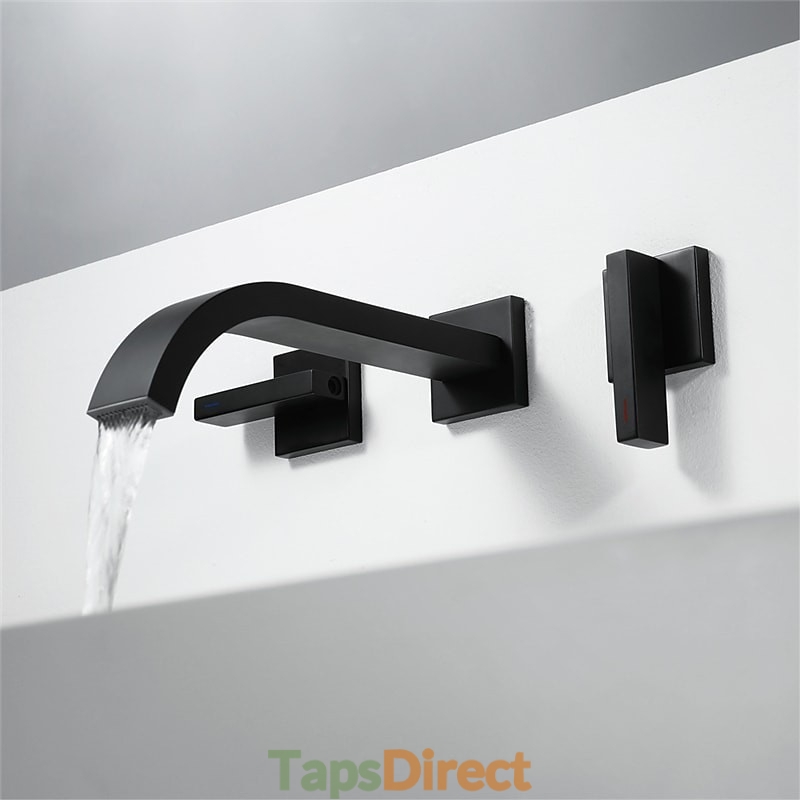 Style: Contemporary, Features: Wall Mount, Widespread, Waterfall, Faucet Type: Bathroom Sink Faucet, Installation Type: Other, Number Of Handles: Two Handles, Cold and Hot Switch: Yes, Valve Type: Ceramic Valve, Finish: Black, Special selected products: COD, Installation Holes and Handles: Two Handles Two Holes,