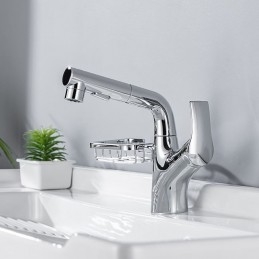 Type: Bathroom Sink Faucets, Style: Modern Contemporary, Features: Rotatable, Pull out, Faucet Type: Bathroom Sink Faucet, Installation Type: Centerset, Number Of Handles: Single Handle, Cold and Hot Switch: Yes, Valve Type: Ceramic Valve, Finish: Painted Finishes, Electroplated, Chrome, Installation Holes and Handles: Single Handle One Hole,