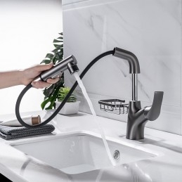 Rotatable Pull out Chrome Electroplated Painted Finishes Single Handle Bathroom Sink Tap