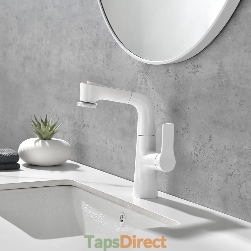 Type: Bathroom Sink Faucets, Style: Modern Contemporary, Features: Pull out, Classic, Rotatable, Pullout Spray, Faucet Type: Bathroom Sink Faucet, Installation Type: Centerset, Number Of Handles: Single Handle, Cold and Hot Switch: Yes, Valve Type: Ceramic Valve, Finish: Painted Finishes, Electroplated, Installation Holes and Handles: Single Handle One Hole,