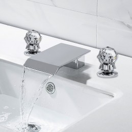 Type: Bathroom Sink Faucets, Style: Modern Contemporary, Features: Widespread, Waterfall, Faucet Type: Bathroom Sink Faucet, Installation Type: Widespread, Number Of Handles: Two Handles, Cold and Hot Switch: Yes, Valve Type: Ceramic Valve, Finish: Painted Finishes, Electroplated, Cell type: no battery, Installation Holes and Handles: Two Handles Three Holes,