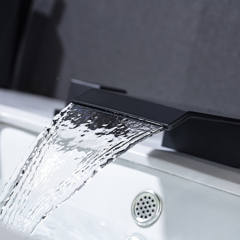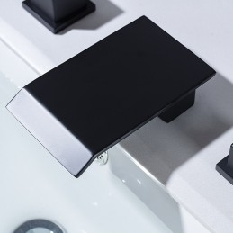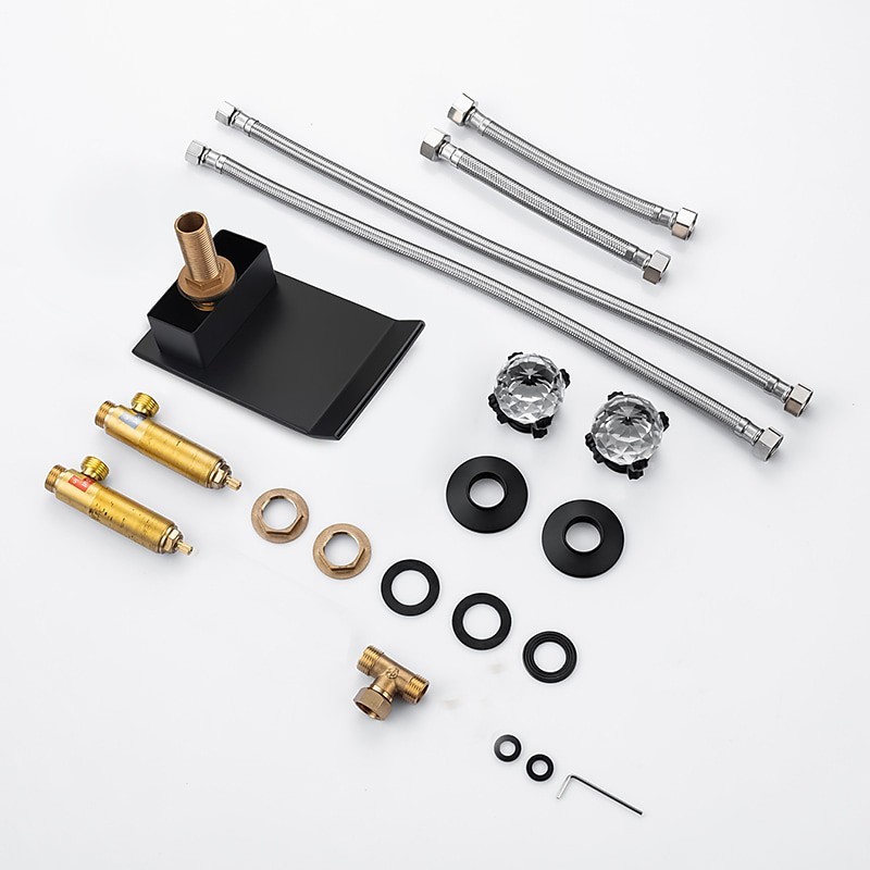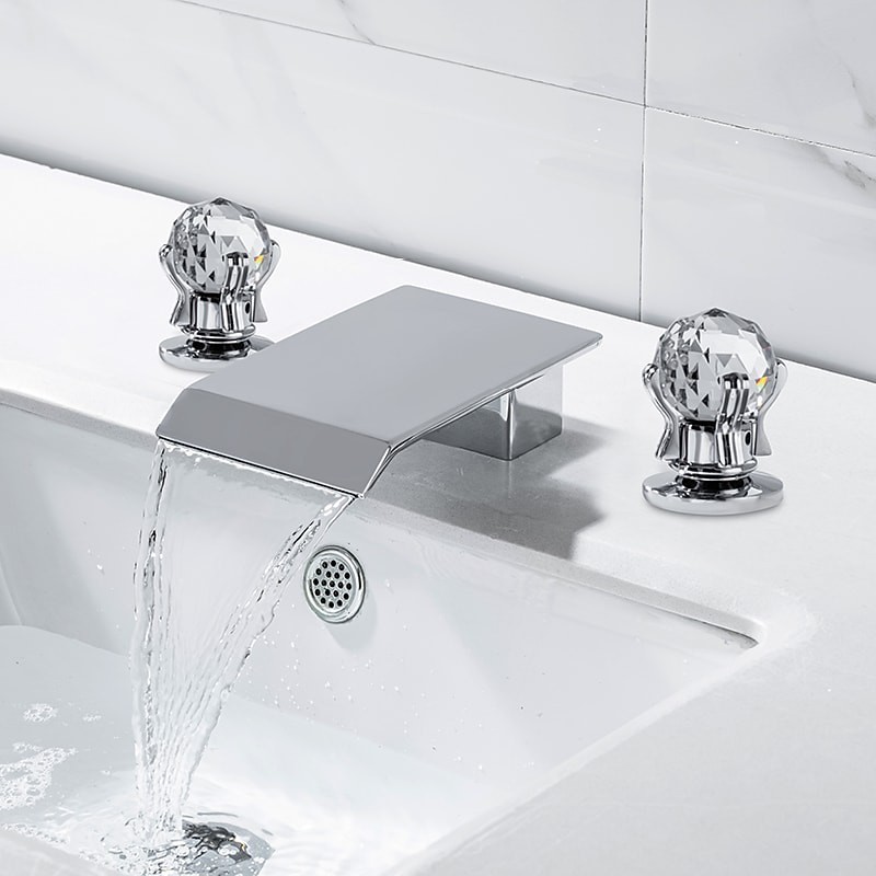 Two Crystal Knob Handles Waterfall Matte Black Chrome Deck Mounted Widespread Bathroom Tap for Bathtub or Sink