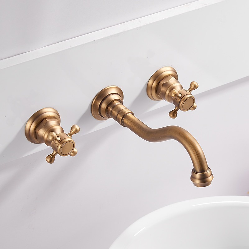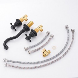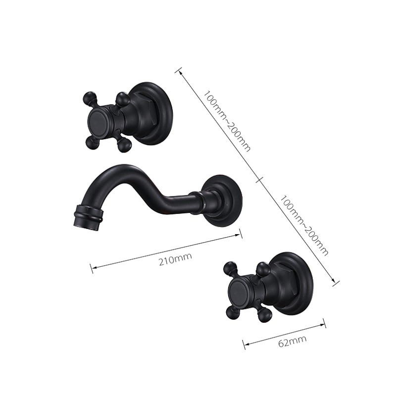 Type: Bathroom Sink Faucet+ Accessories, Style: Contemporary, Features: Wall Mount, Widespread, Faucet Type: Bathroom Sink Faucet, Installation Type: Wall Mounted, Cold and Hot Switch: Yes, Valve Type: Ceramic Valve, Finish: Electroplated, Installation Holes and Handles: Two Handles Three Holes,