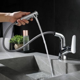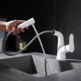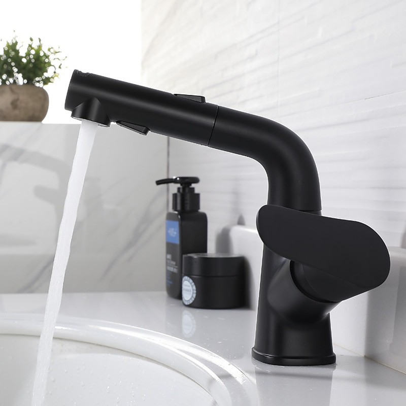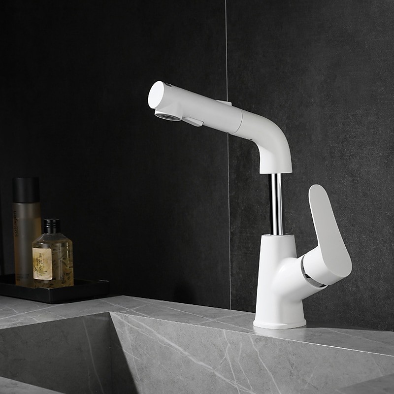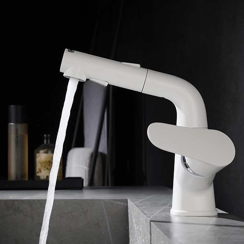 Type: Bathroom Sink Faucets, Style: Modern Contemporary, Features: Rotatable, Pullout Spray, Pull out, Faucet Type: Bathroom Sink Faucet, Installation Type: Centerset, Number Of Handles: Single Handle, Cold and Hot Switch: Yes, Valve Type: Ceramic Valve, Finish: Painted Finishes, Electroplated, Installation Holes and Handles: Single Handle One Hole,